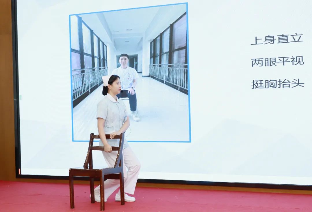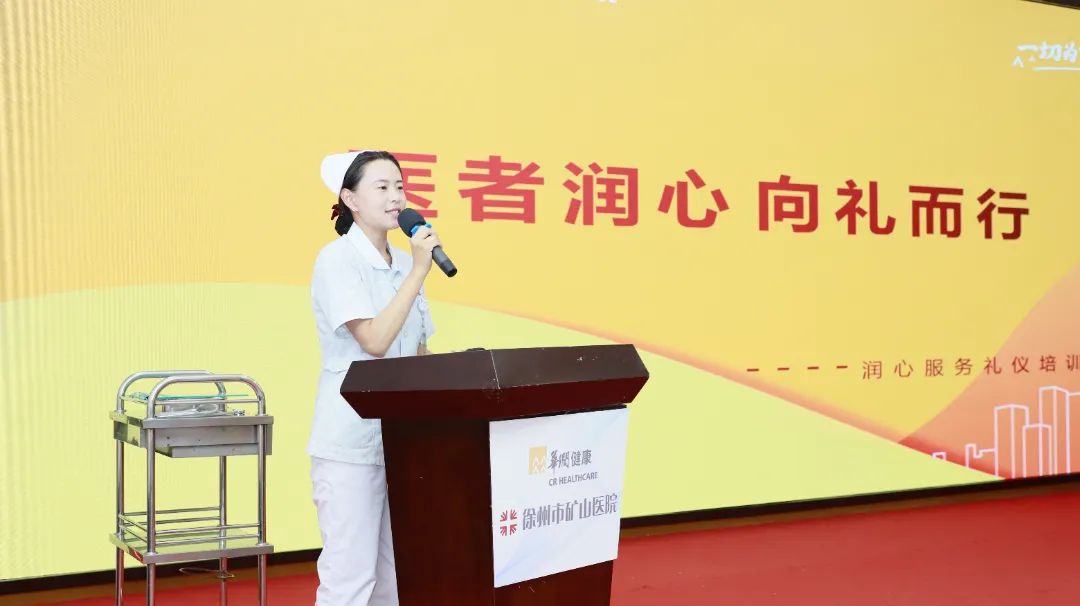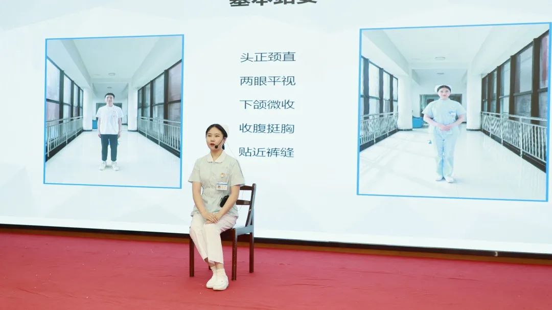 華潤健康患者服務(wù)禮儀大賽一等獎獲得者神經(jīng)內(nèi)科護士張暢為大家在現(xiàn)場演示服務(wù)禮儀