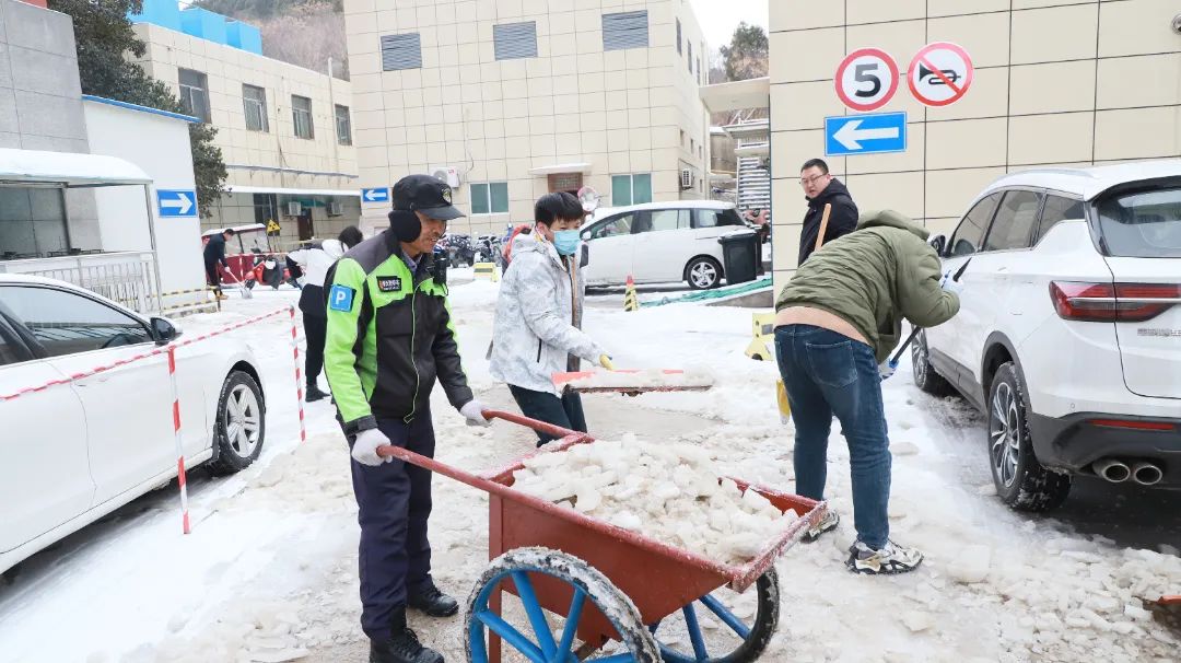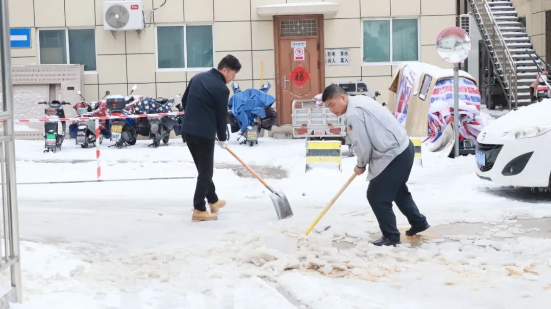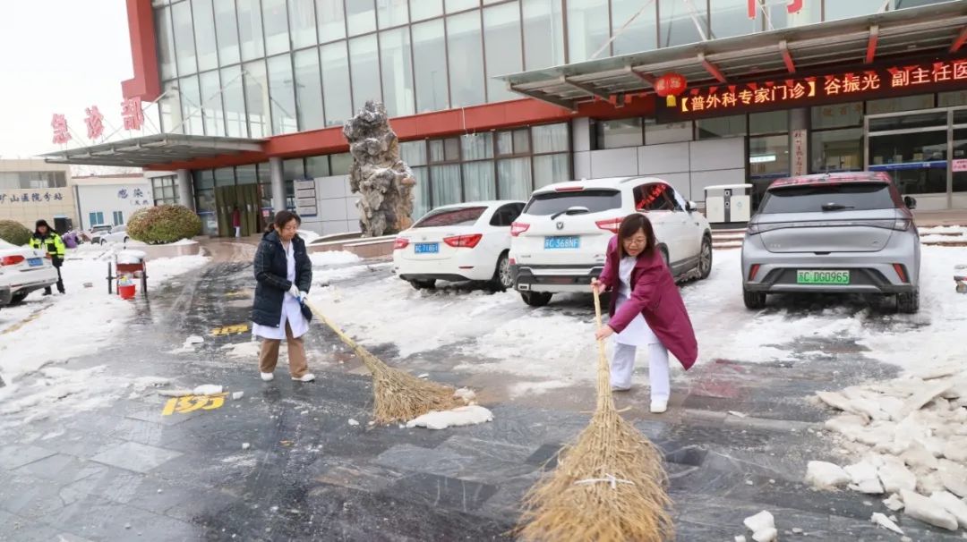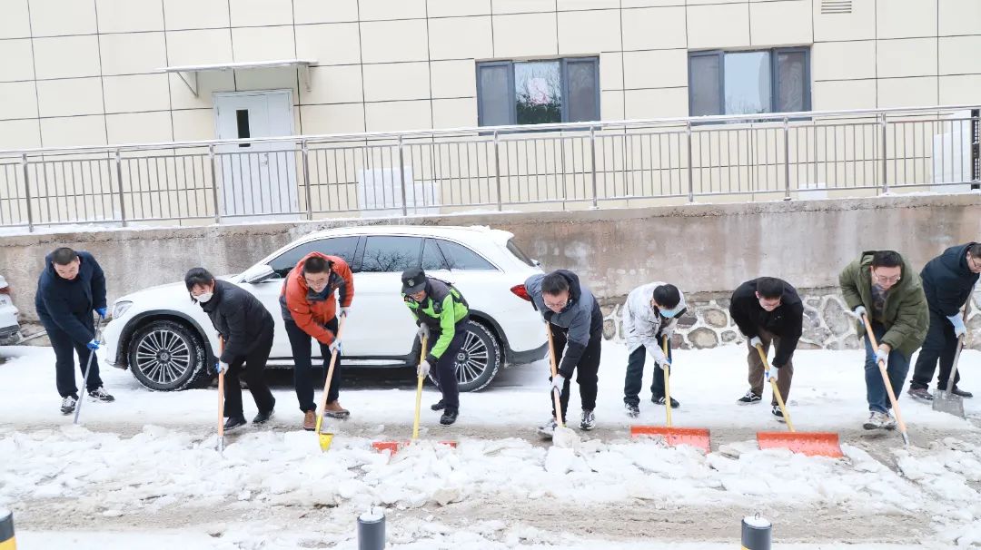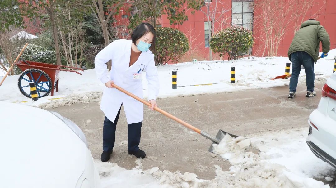 醫(yī)院的主要通道、門診入口、急診門前、住院樓前、食堂門口等到處都有鏟雪者的身影。他們一個個化身“除雪戰(zhàn)士”,有的用鐵鍬鏟去地面上踩實(shí)的凍冰,有的用掃帚掃除路面上的積雪,大家相互配合、齊心協(xié)力,經(jīng)過兩個多小時的清掃,院區(qū)內(nèi)道路積雪清掃完畢,極大的方便了患者、車輛和行人通行,充分展現(xiàn)了醫(yī)院黨員干部將習(xí)近平新時代中國特色社會主義思想主題教育走深走實(shí)的行動自覺及精神風(fēng)貌。