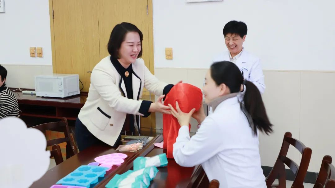一束鮮花寄真情,一聲問候表祝福。3月8日一大早,黨委書記、院長杜瑜帶領(lǐng)工會、團委、醫(yī)務(wù)部、護理部醫(yī)護人員深入臨床各病區(qū),將精心準備的一束束鮮花和中醫(yī)香囊親手送到女性患者和女職工手中,希望這份小禮物能夠讓她們感受到來自醫(yī)院的關(guān)愛與溫暖。