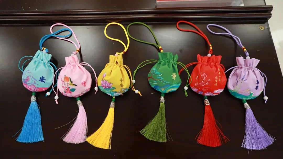 中藥香囊源于傳統(tǒng)醫(yī)學(xué)“衣冠療法”,通過口鼻吸入、皮膚粘膜吸收而發(fā)揮驅(qū)蚊避穢、防御疾病、安神醒腦等功效,民間亦有“戴個香草袋,不怕五蟲害”的說法,寓意著吉祥平安,萬事興順。據(jù)悉,為了此次活動的順利開展,各科室醫(yī)護人員精心挑選購置了各種花色的香囊袋,中藥房也在中醫(yī)科的指導(dǎo)下準備了香囊所需的藥材。